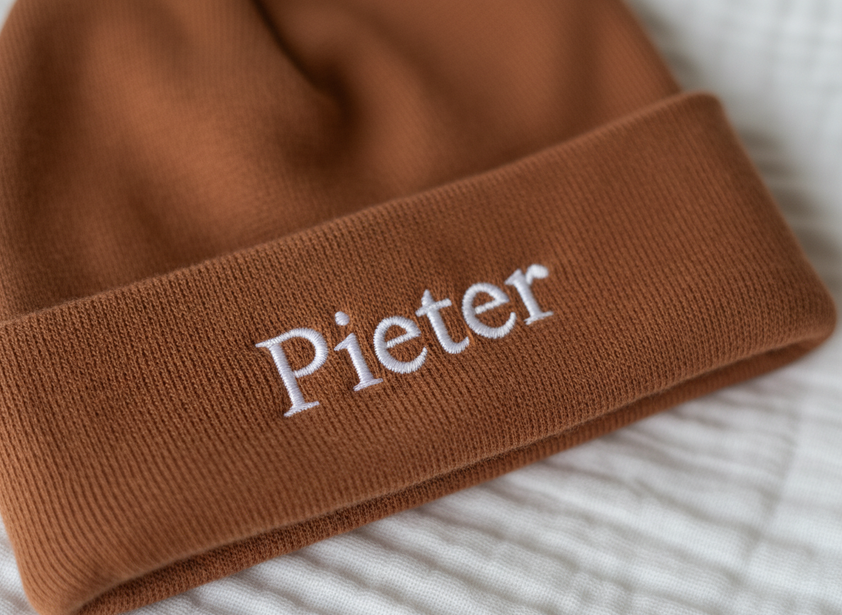 Iedere pasgeboren baby heeft een mutsje nodig om zich lekker warm te houden. Het hoofdje is de plek waar de meeste warmte verloren gaat. Het is dus van belang dat je altijd een lekker warm mutsje voor je baby hebt, ook in de zomer. Hoe leuk is het dan ook om dit mutsje te personaliseren met de naam van de kleine! Kies je lettertype en garen en wij zorgen ervoor dat je babymuts mooi geborduurd wordt met de naam.